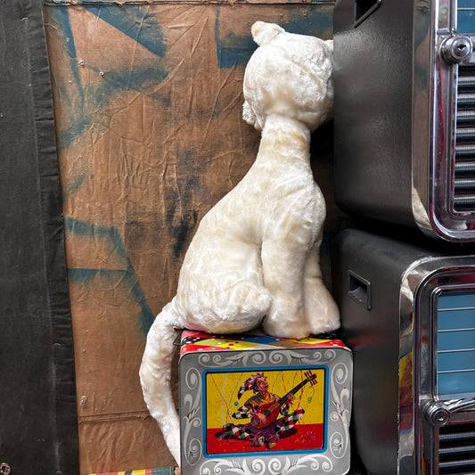 vtg 1960s BOO BOO KITTY Plush // vintage laverne & shirley dollcraft sapphire eyes large white kitty plush long tail 21" retro furry toy