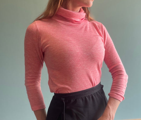 vtg 70s PASTEL PINK SWEATER // vintage funnel neck baby pink super soft layering top lightweight fairy pastel core winter minimalist teacher