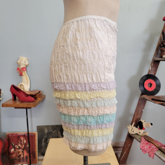 vtg 70s PASTEL RUFFLE BLOOMERS // vintage lingerie shorts partners please medium womens square dancing shorts retro long leg rainbow fairy