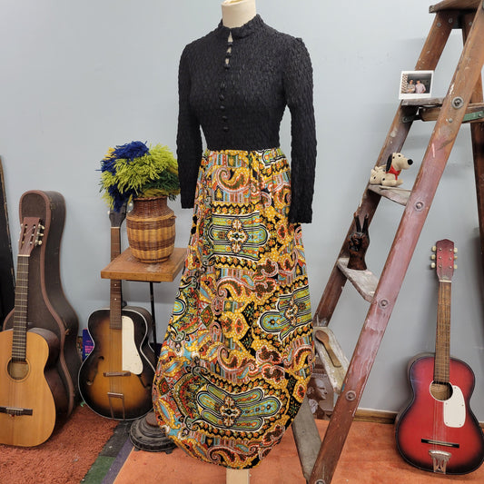 vtg 70s PSYCHEDELIC VELVET DRESS // vintage size 10 medium popcorn knit crinkly top abstract patterned velvet maxi skirt retro autumn style