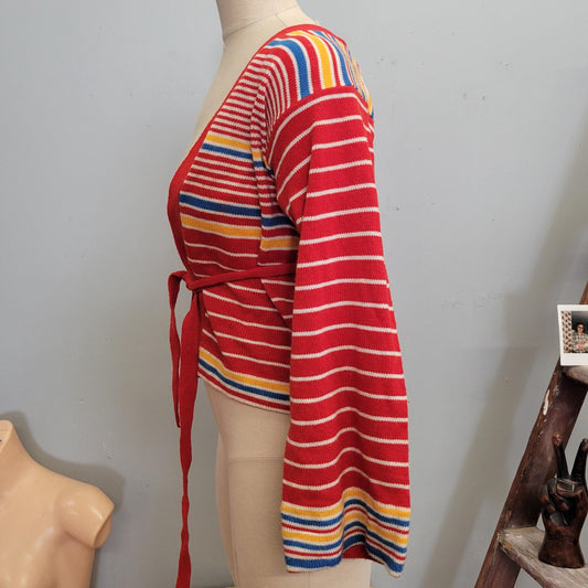 Vtg 70s RAINBOW STRIPED CARDIGAN // vintage flare bell sleeve retro space dye hippie boho small women’s autumn colors primary colorway cute