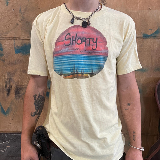 vtg 70s SHORTY BEACH AIRBRUSHED tshirt // vintage tourist trap ocean california florida shawty named true retro fashion style summer tee