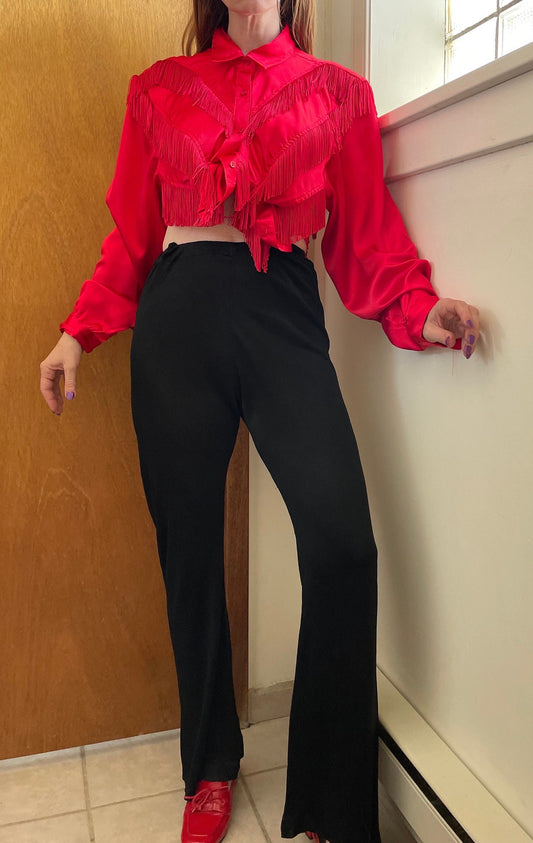 vtg 70s SLINKY BLACK FLARES // vintage medium womens high waisted retro bell bottoms stretchy flowy wide leg flare pants autumn fashion set