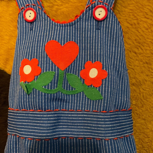 vtg 70s TODDLER HEART OVERALLS // vintage flower applique hippie boho bell bottom overalls girls retro pinstriped coveralls autumn americana