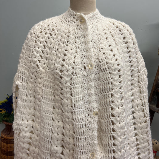 Vtg 70s WHITE KNIT PONCHO // vintage xl crochet cape mod hippie retro wearable blanket shawl angelic autumn cottage core stylish cute winter