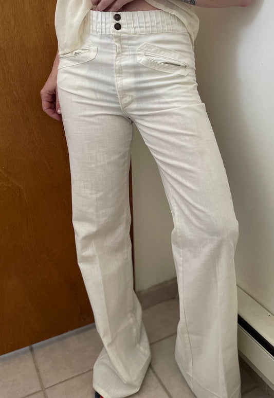 vtg 70s WHITE BELLBOTTOMS // vintage hippie boho flare pants sailor style ladies hipster slacks high waisted retro wide leg coastal casual