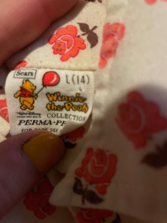 vtg 70s WINNIE THE POOH Top // vintage womens xs youth large petite floral button down rayon blouse autumn cozy style cute flower power top