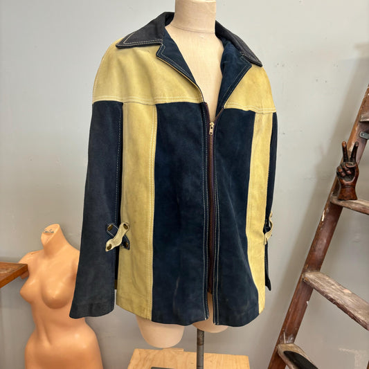 vtg 70s YELLOW & BLUE SUEDE Cape // vintage retro pointy collar dyed leather poncho hippie bohemian sip up two tone color block mod jacket