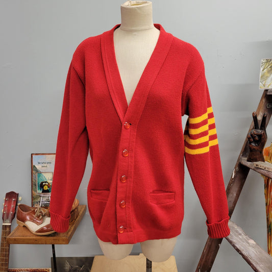 vtg 70s YELLOW STRIPED CARDIGAN // vintage sweater east tenn 40 v neck varsity award jacket retro mcdonalds vibes autumn preppy mod fashion