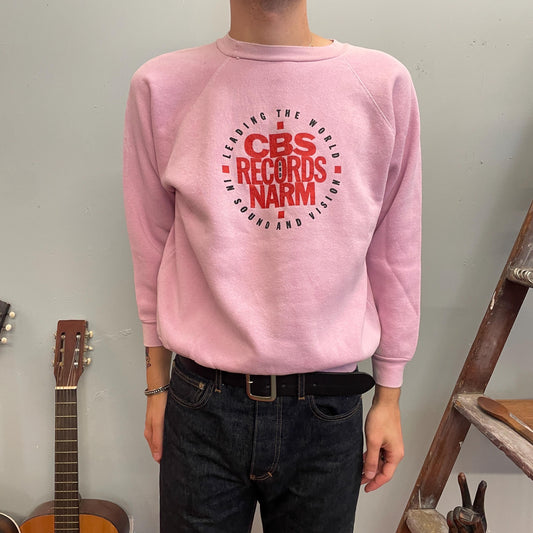 vtg 80s CBS RECORDS SWEATSHIRT // vintage crewneck distressed pink music tour dj store crew bleach promo band tv punk new wave rock jazz