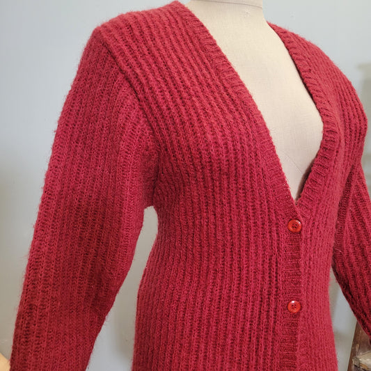 vtg 80s BURGUNDY RIBBED SWEATER // vintage red button up cardigan oversized small womens autumn fall colors textured deep v neck slouchy fit