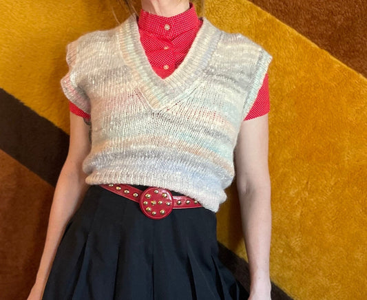 vtg 80s CROPPED MOHAIR VEST // vintage pastel muted colors v neck pullover sleeveless crop top knit striped layering boxy sweater vest fall