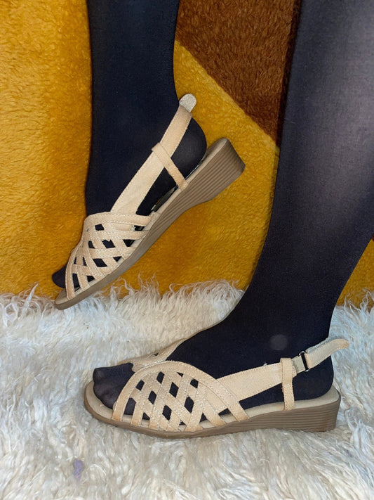 vtg 80s CUT OUT SLINGBACK Sandals // vintage beige sandals like new classique sport size 8 comfy slip on open toe flats student casual day