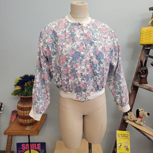 vtg 80s FLORAL BOMBER JACKET / vintage stefano international medium name brand designer 90210 beverly hills valley style cropped fall jacket