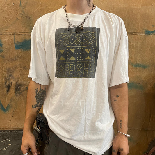 vtg 80s GEOMETRIC PATTERN TSHIRT / vintage ruins ancient tablet egypt art boxy euro stone language egyptian artifact roman art museum tee