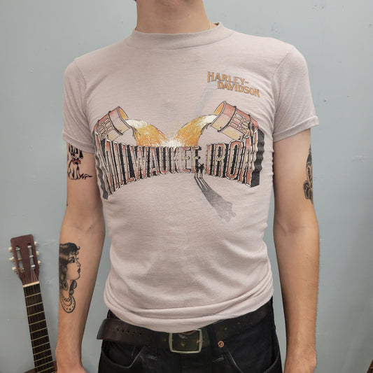 vtg 80s HARLEY DAVIDSON milwaukee iron tshirt // vintage single stitch biker tee biker 3d emblem thin rock true vintage 70s pa pennsylvania