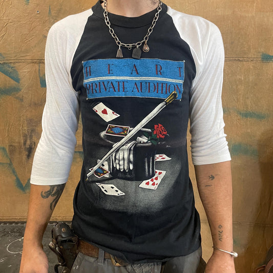 vtg 80s HEART private audition RAGLAN TEE // vintage baseball quarter sleeve 1982 concert band tour merch official retro femme music tee