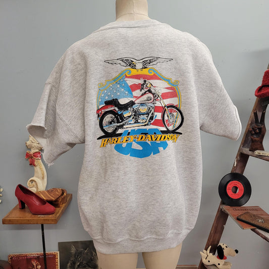 vtg 80s HARLEY DAVIDSON SWEATSHIRT // vintage crewneck daytona 1991 pannill XLarge cut off slouchy oversized cropped sweatshirt motorcycle