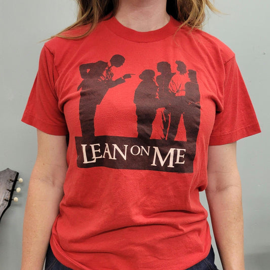 vtg 80s LEAN ON ME tshirt // vintage color purple movie joe clark cinema promo screen black tee inner city youth gangs drama bill withers