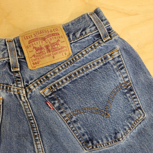 vtg 80s LEVI DENIM SHORTS // vintage 560 red tag regular loose fit jorts light medium stone wash paper tag denim jeans preppy casual