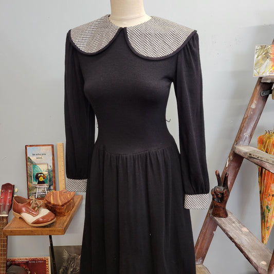 vtg 80s LANZ HOUNDSTOOTH COLLARED Dress // vintage lanz originals size 4 wide rounded pan collar neat womens minimalist preppy autumn style