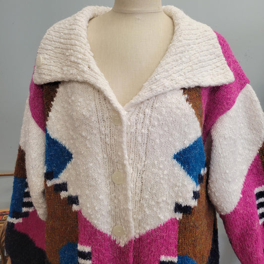 vtg 80s KNIT OVERSIZE CARDIGAN // vintage abstract geometric op art textured structured boxy slouchy funky autumn chubby knit sweater jacket
