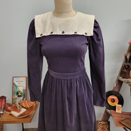 vtg 80s LANZ CORDUROY DRESS vintage lanz originals size 5 small square collar sailor style autumn vibes cute cottage core minimalist preppy