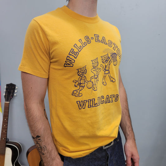 vtg 80s MINNESOTA WILDCATS TSHIRT // vintage sport-t medium yellow athletic sports school cats kitty basketball jersey easton camp shirt