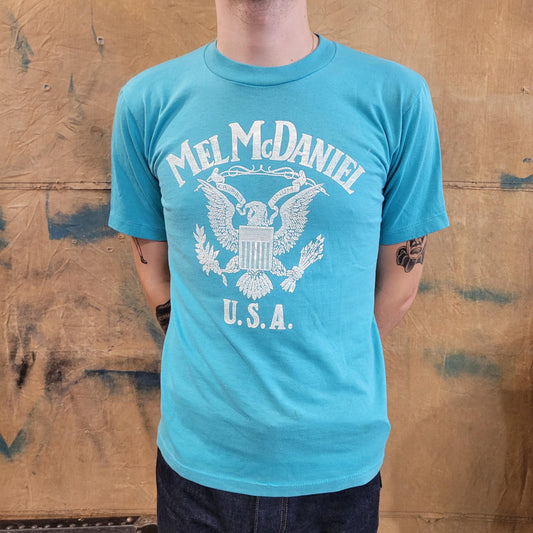 vtg 80s MEL MCDANIEL USA tshirt // vintage usa eagle ocean light blue country western texas outlaw true old style thin tour concert tee