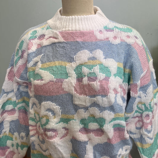 vtg 80s PASTEL SPARKLE SWEATER // vintage spunky large metallic knit fairy core chunky boxy knit flower power multicolor abstract cute top