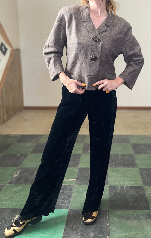 vtg 50s CROPPED DRESS JACKET // vintage womens medium gray wool cropped wool blazer autumn minimalist mcm preppy structured short coat