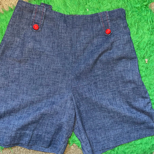 vtg 50s DARK CHAMBRAY SHORTS // vintage red buttons cute short shorts jorts rockabilly 50s pin up classic retro style high waisted denim