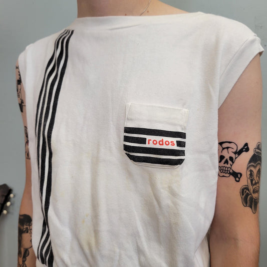 vtg 80s RODOS SLEEVELESS TOP // vintage short sleeve sweatshirt tee shirt greece hot rod racing brand stripes flag car moto biker race retroRegular price $43.51 USDRegular priceUnit price / per-
