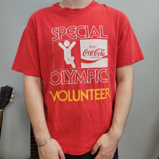 vtg 80s SPECIAL OLYMPICS COKE tshirt // vintage coca cola 90s paralymics red runner track player fan merch promo event retro style teeRegular price $37.51 USDRegular priceUnit price / per-