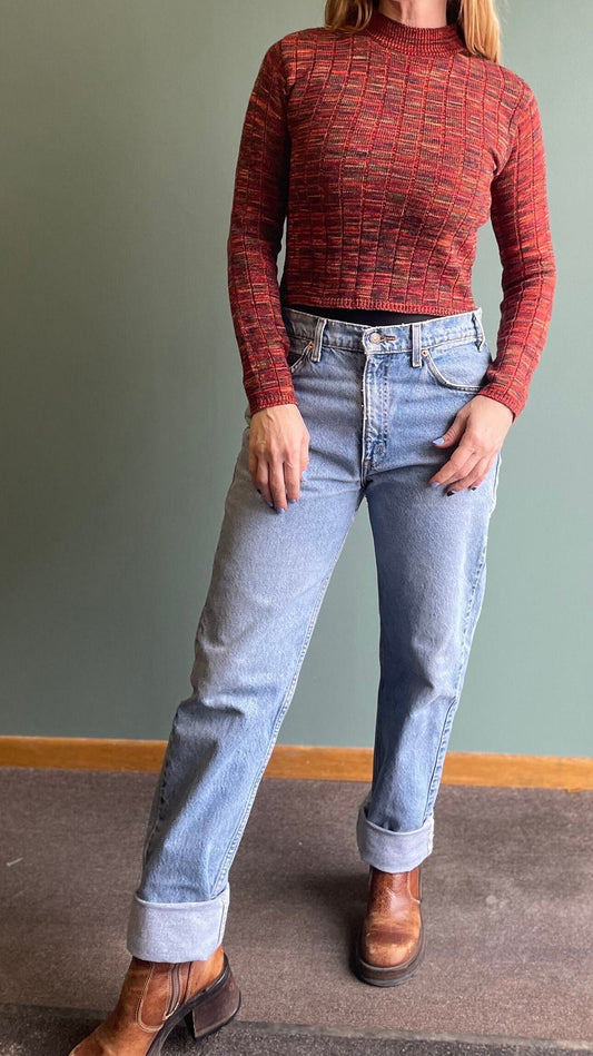 vtg 80s SPACE DYE SWEATER // vintage confetti multicolor speckled fitted cropped knit top mock neck ribbed textured warm earth tones autumnRegular price $39.51 USDRegular priceUnit price / per-
