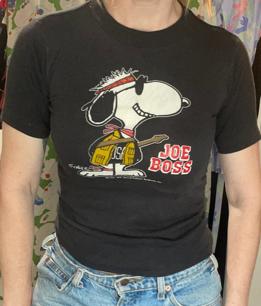 vtg 80s SNOOPY BRUCE SPRINGSTEIN Shirt // vintage joe boss hippie rock band graphic tee charlie brown peanuts black fitted youth baby teeRegular price $78.00 USDRegular priceUnit price / per-