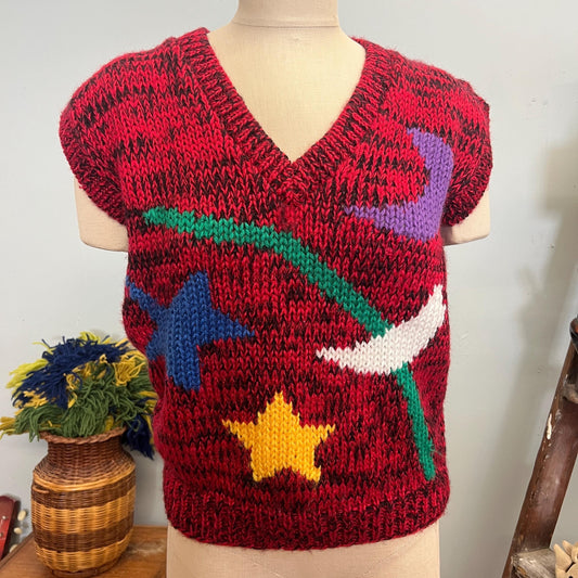 vtg 80s STAR SWEATER VEST // vintage cherry stix size large red space dye abstract pattern celestial knit short sleeve sweater v neck cropRegular price $65.00 USDRegular priceUnit price / per-