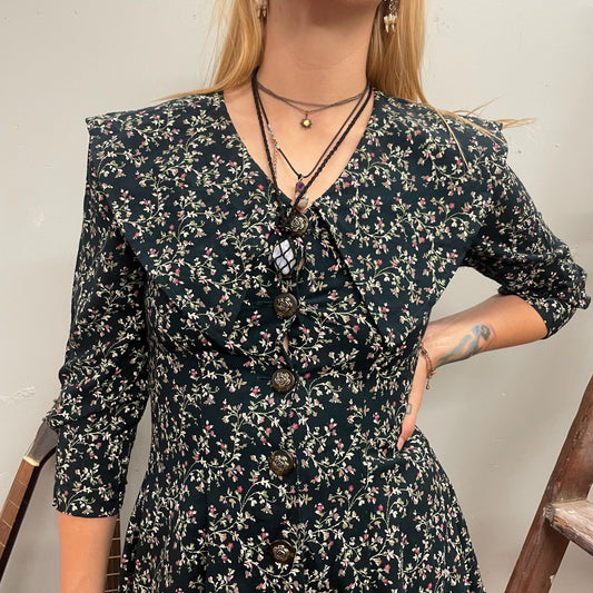 vtg 90s ADORABLE COLLARED MINI Dress // vintage cute green floral rayon button up sailor shawl exaggerated pointy collar baby doll grunge