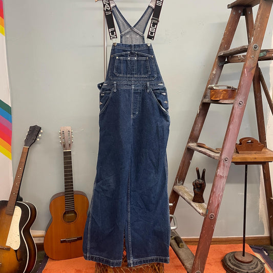 vtg 90s FUBU JEANS OVERALLS // vintage spell out name brand hip hop shark tank tlc b girl medium wash casual sporty spice bootcut flare bibs