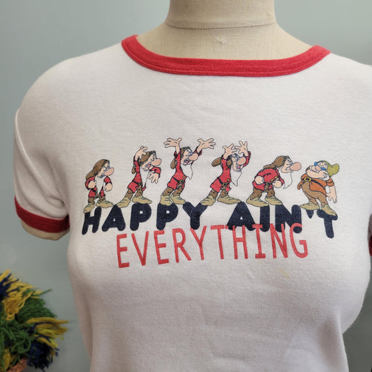 vtg 90s GRUMPY SNOW WHITE Shirt // vintage disney youth large baby tee 7 dwarves “happy ain’t everything” funny ringer tee Y2K french cut