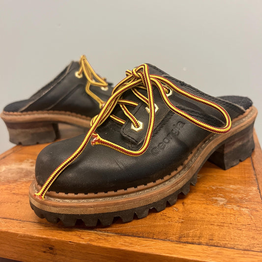 vtg 90s GEORGIA LOGGER BOOTS // vintage black leather lace up chunky clogs slip ons cute baby doll grunge style retro y2k slip dress biker