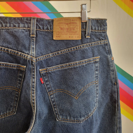 vtg 90s LEVIS 570 JEANS 34 /// vintage baggy jeans dark wash red tag levis denim skater thin 1990s jeans casual autumn retro unisex grunge
