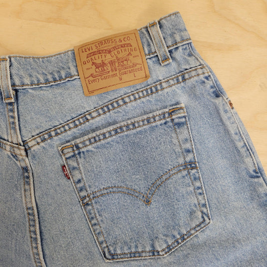 vtg 90s LEVIS DENIM SHORTS // vintage light wash size 16 adult 34 waist denim jorts casual retro campus wear school boxy long shorts