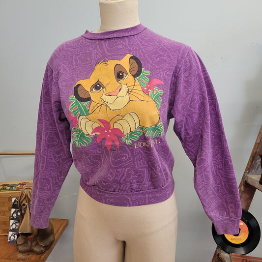 vtg 90s LION KING SWEATSHIRT // vintage disney youth xl simba chillin purple unisex small autumn fashion cute africa pattern all over print
