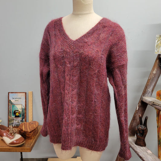 vtg 90s MAGENTA MOHAIR SWEATER // vintage susan bristol large long oversized shaggy deep mauve v neck ribbed autumn tones cottage core cozy