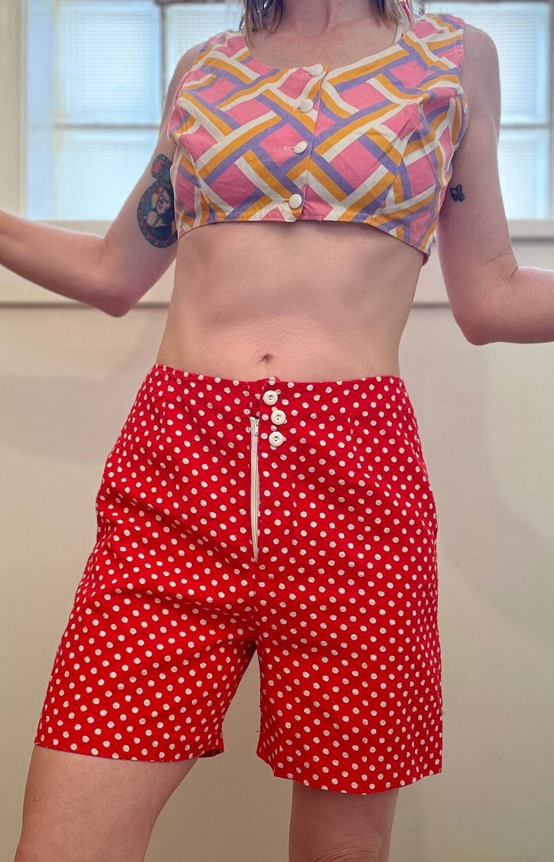 Vintage 1950s Red Polka Dot Seersucker Shorts