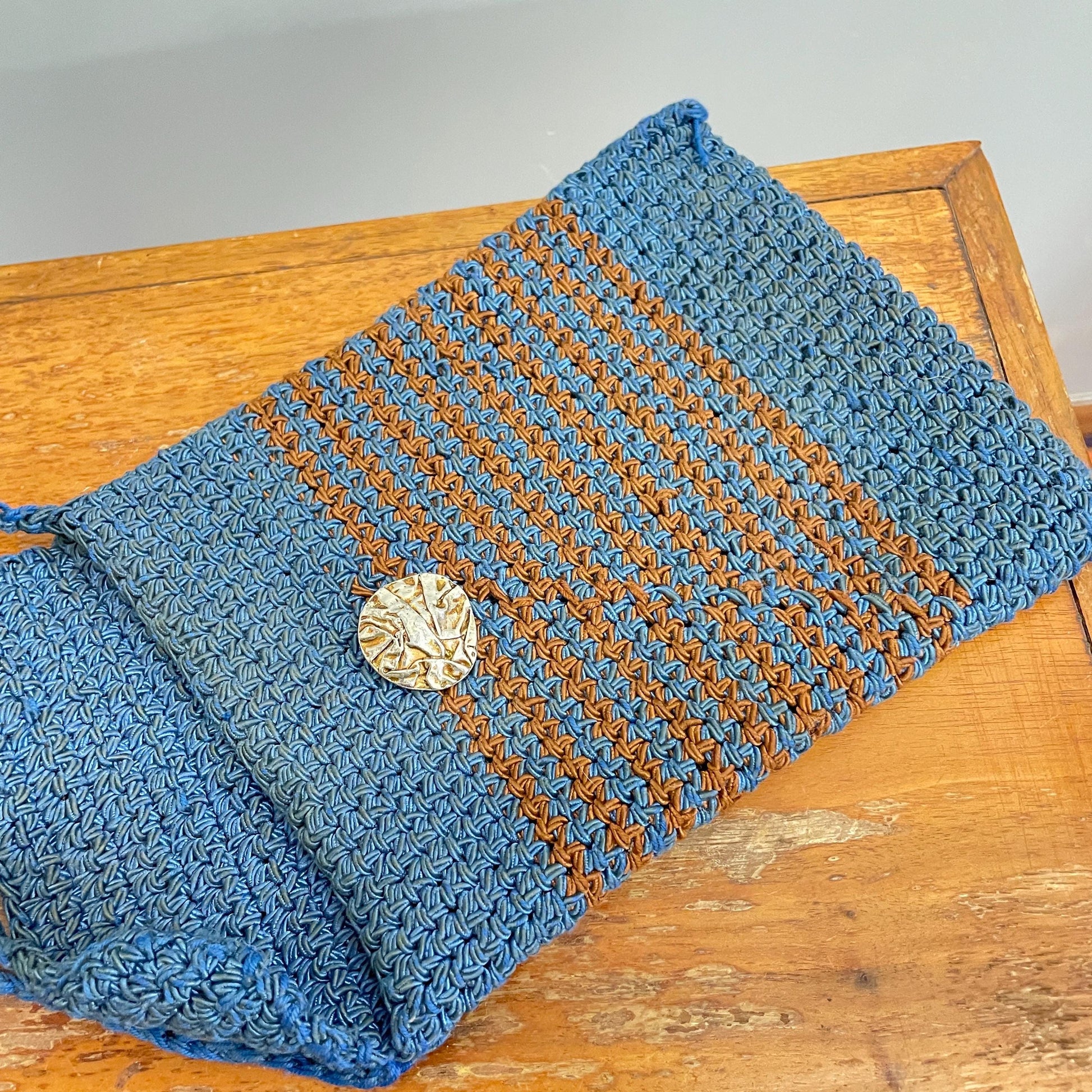 vtg 1930s CROSSBODY BAG // vintage antique crochet tight stitch pouch day purse blue orange chevron hand knit art deco 1920s flapper style