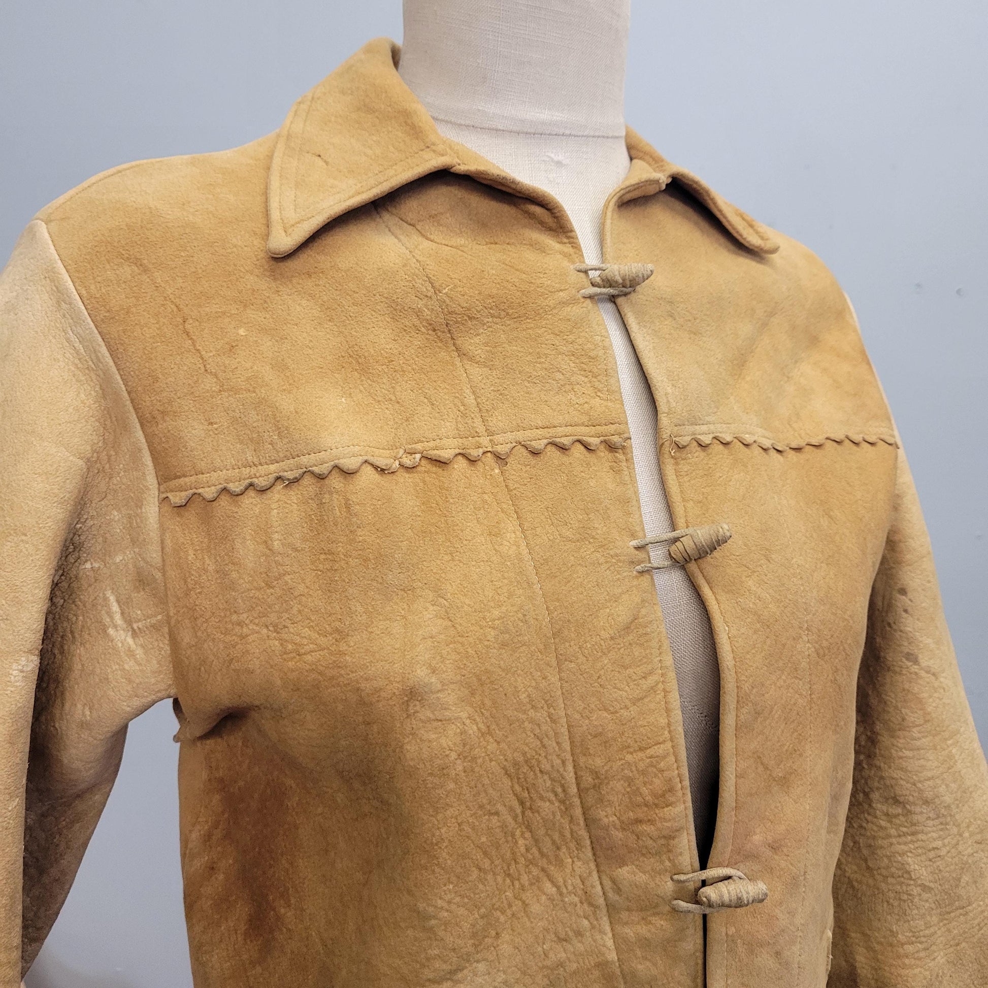 vtg 1940s BUCKSKIN FRINGE JACKET // vintage toggle button tan leather cropped hippie western ranchwear easy rider davy crockett retro style