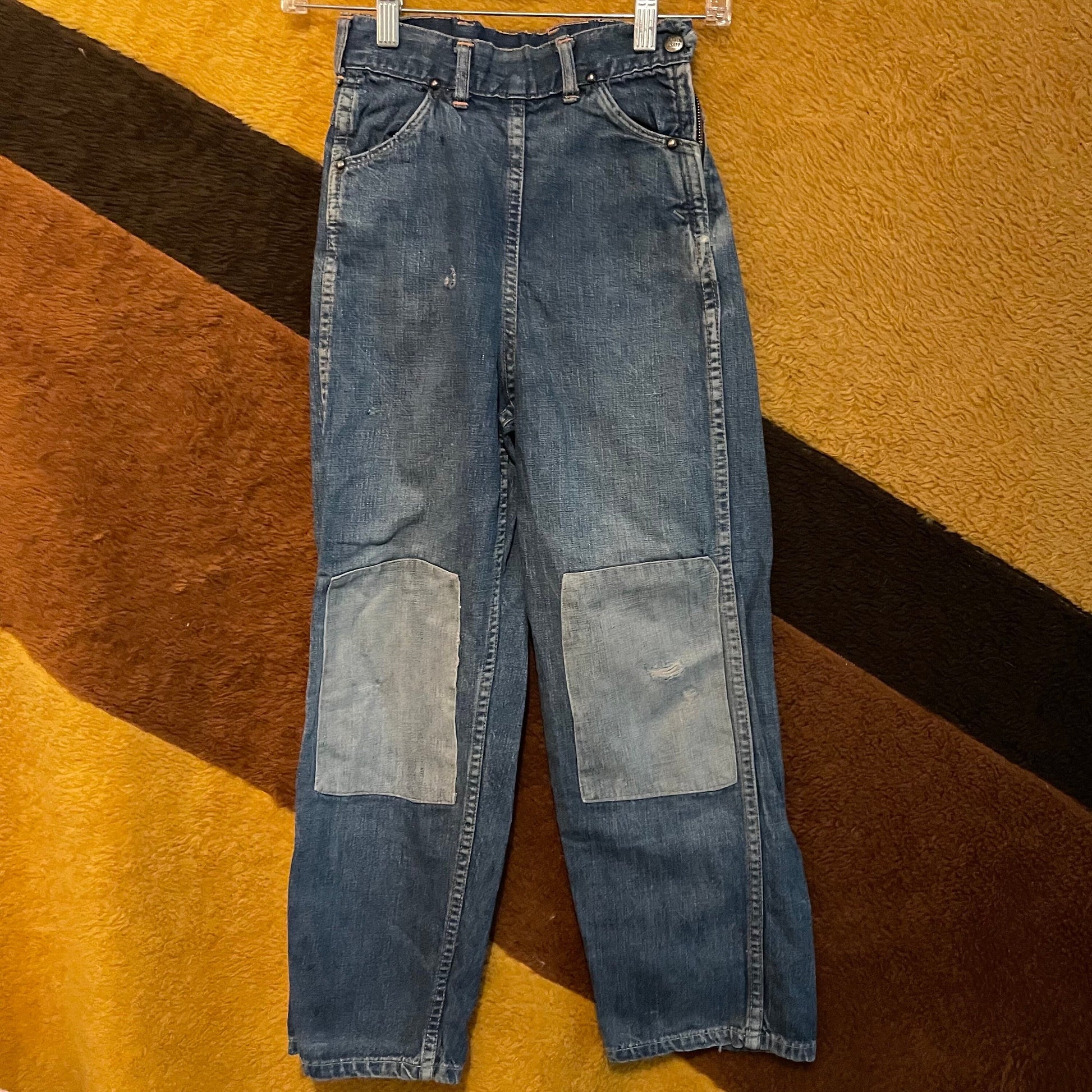 vtg 1940s size zip denim size 10 kids /girls ranchcraft farm jeans high waisted patched soft distressed denim jeans preteen ranch wear girls