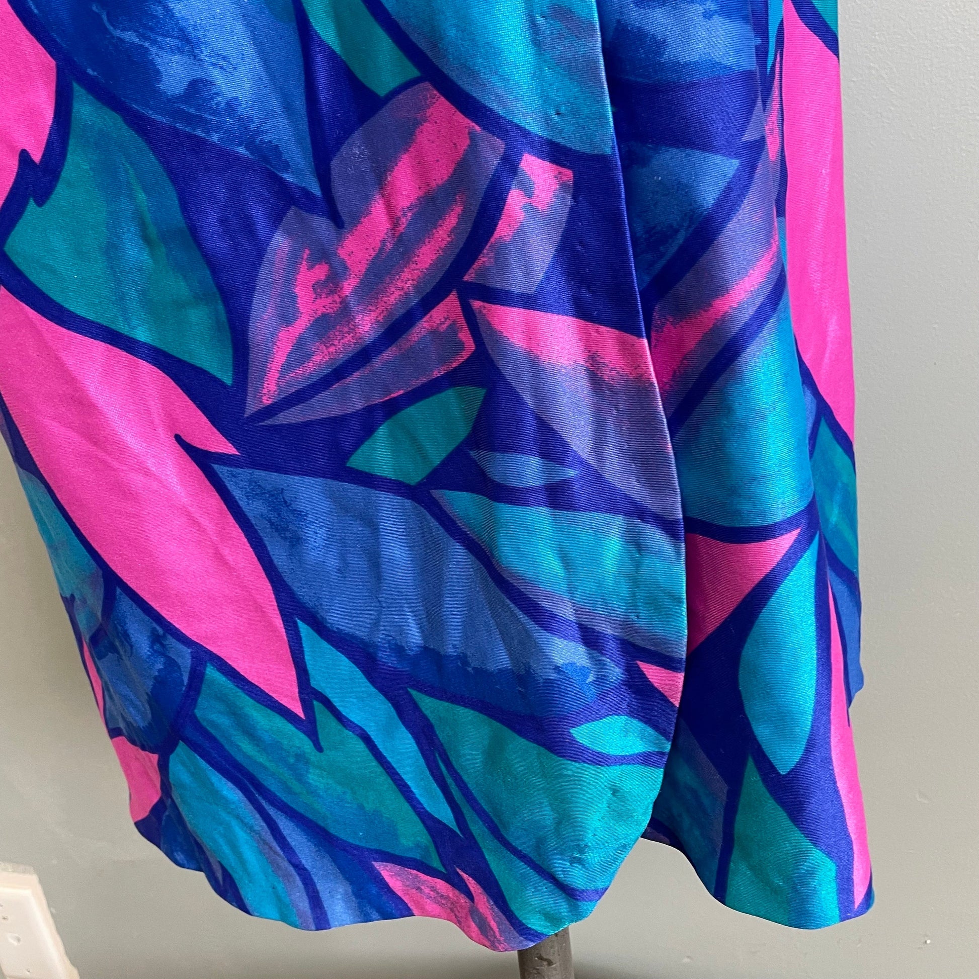 vtg 1970s swim skirt bathing suit cover up bright psychedelic wrap skirt nylon stained glass abstract print midi skirt summer beach wrap